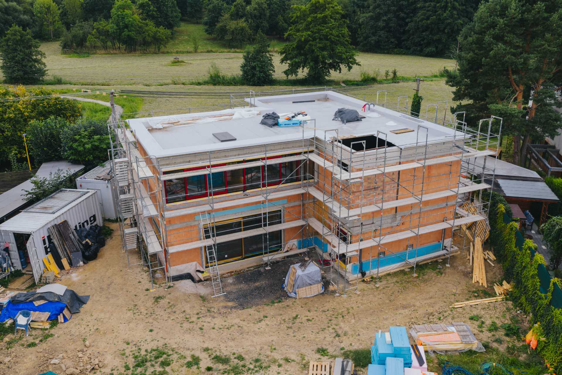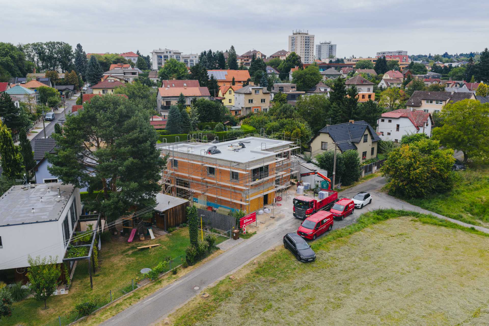 Novostavba třípodlažního rodinného domu s fasádou z lícových pásků, okna z dřevěných lamel s hliníkovými vertikálami na fasádě. Nosný systém je kombinací cihelných vyzdívek a monolitických konstrukcí. Interiér zcela atypický se zaměřením na jednoduchý detail. Dům je vybaven inteligentním systémem řízení a všemi dostupnými moderními technologiemi.
