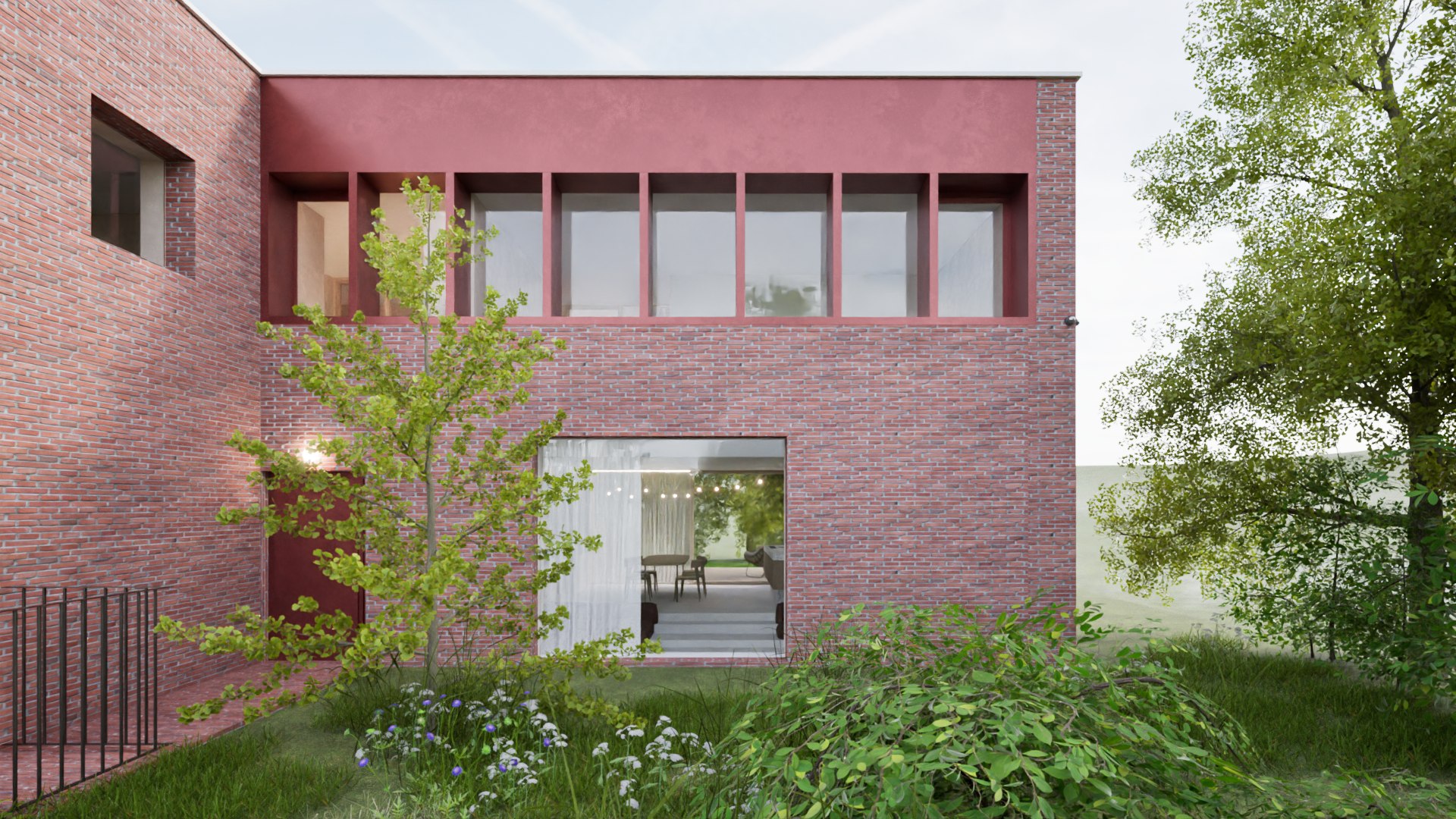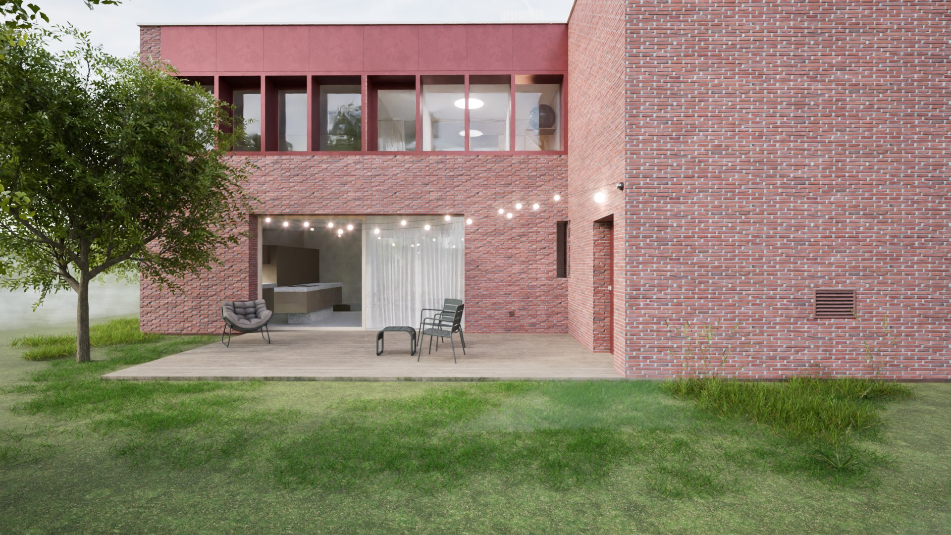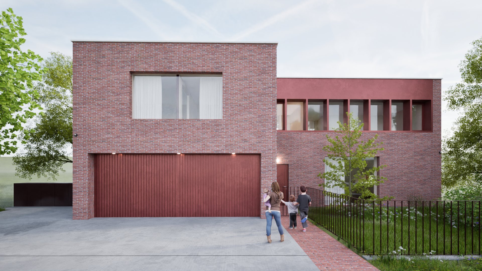 Novostavba třípodlažního rodinného domu s fasádou z lícových pásků, okna z dřevěných lamel s hliníkovými vertikálami na fasádě. Nosný systém je kombinací cihelných vyzdívek a monolitických konstrukcí. Interiér zcela atypický se zaměřením na jednoduchý detail. Dům je vybaven inteligentním systémem řízení a všemi dostupnými moderními technologiemi.